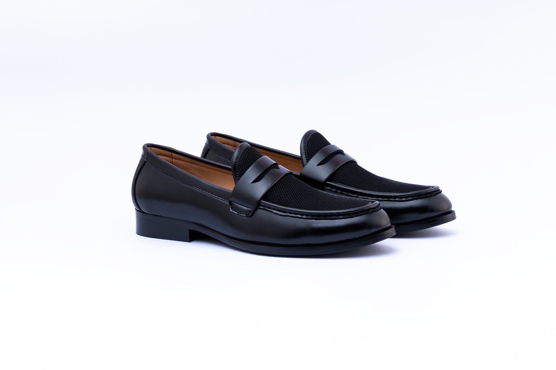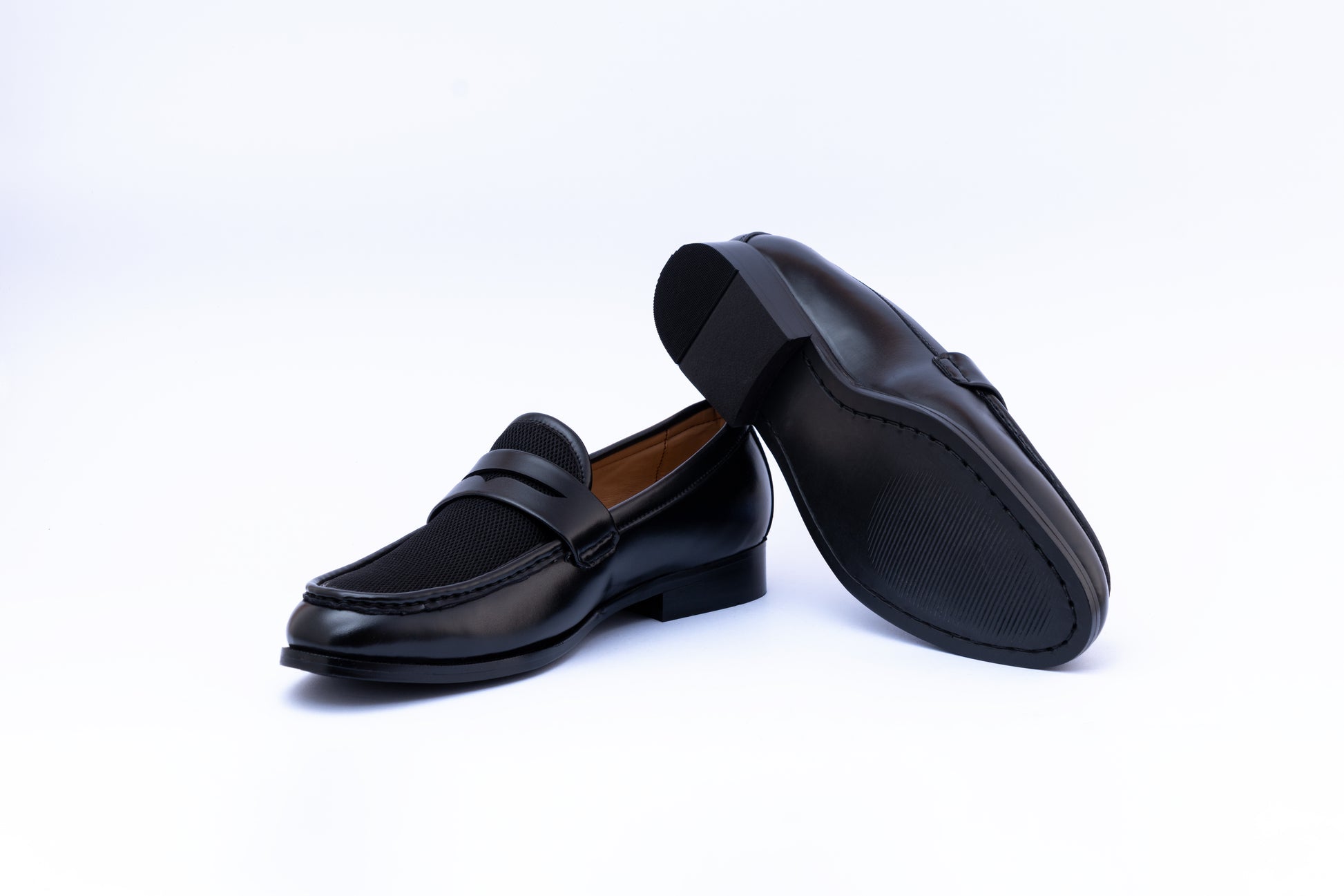 PENNY LOAFERS WITH MESH DETAIL-BLACK