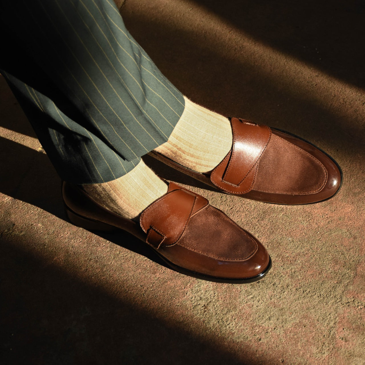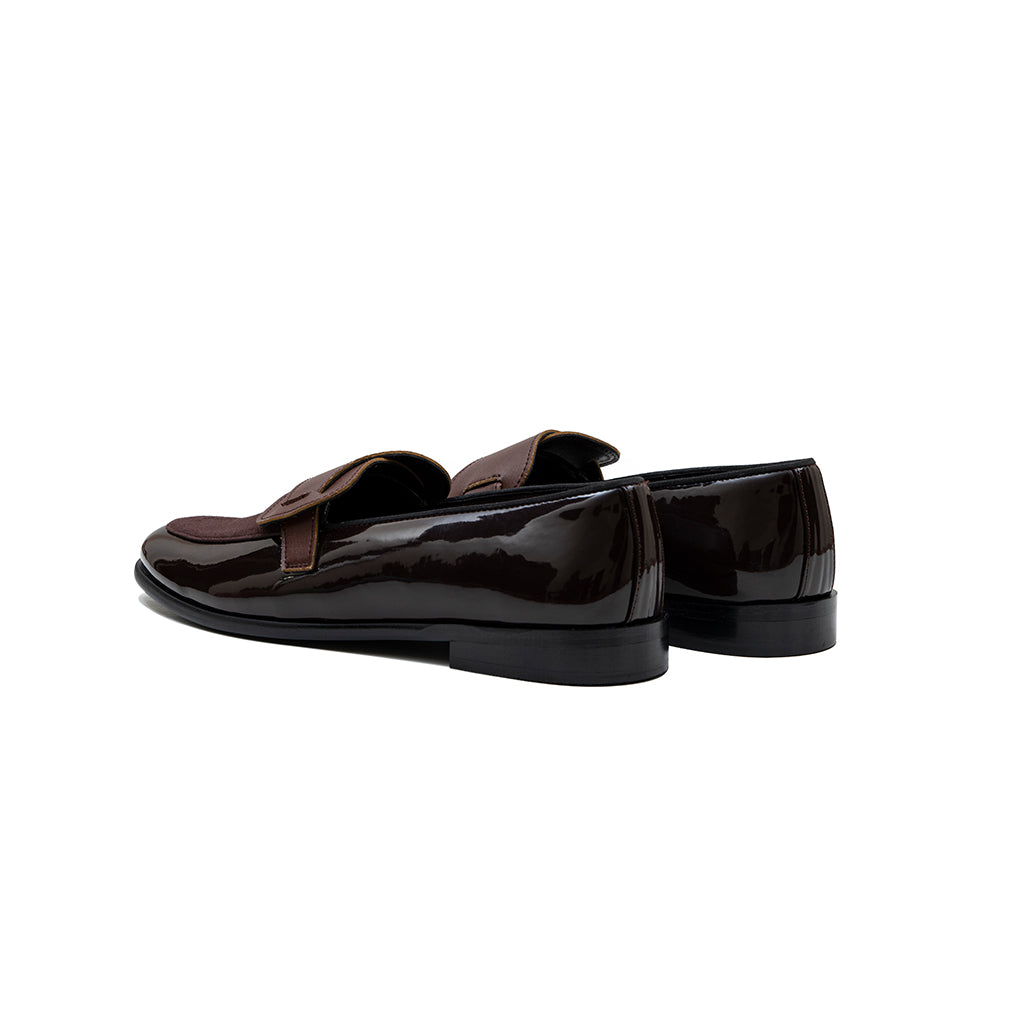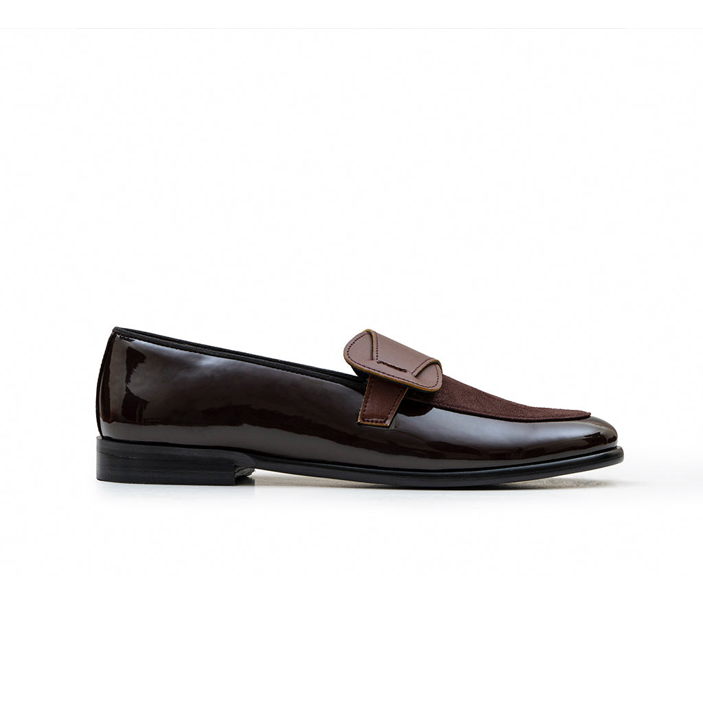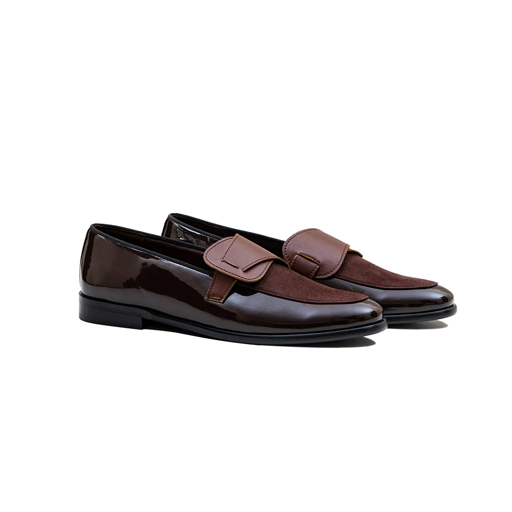 Your search for a red carpet loafer ends here. Taking the spirit of a butterfly loafer but adding a nice twist to it by separating the vamp to the quarters and allowing multiple faux leather/textures to be joined together. An elegant style, specially designed for your big day.