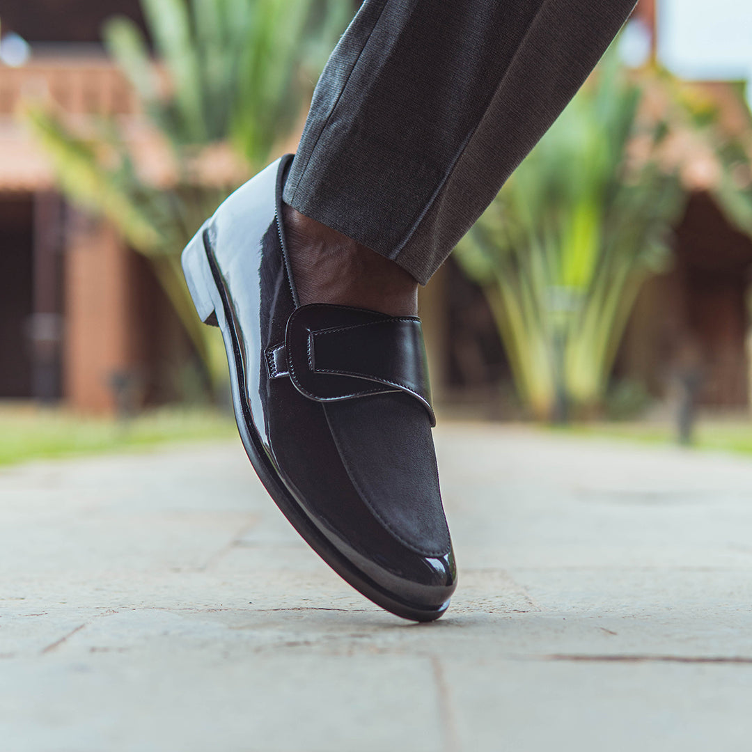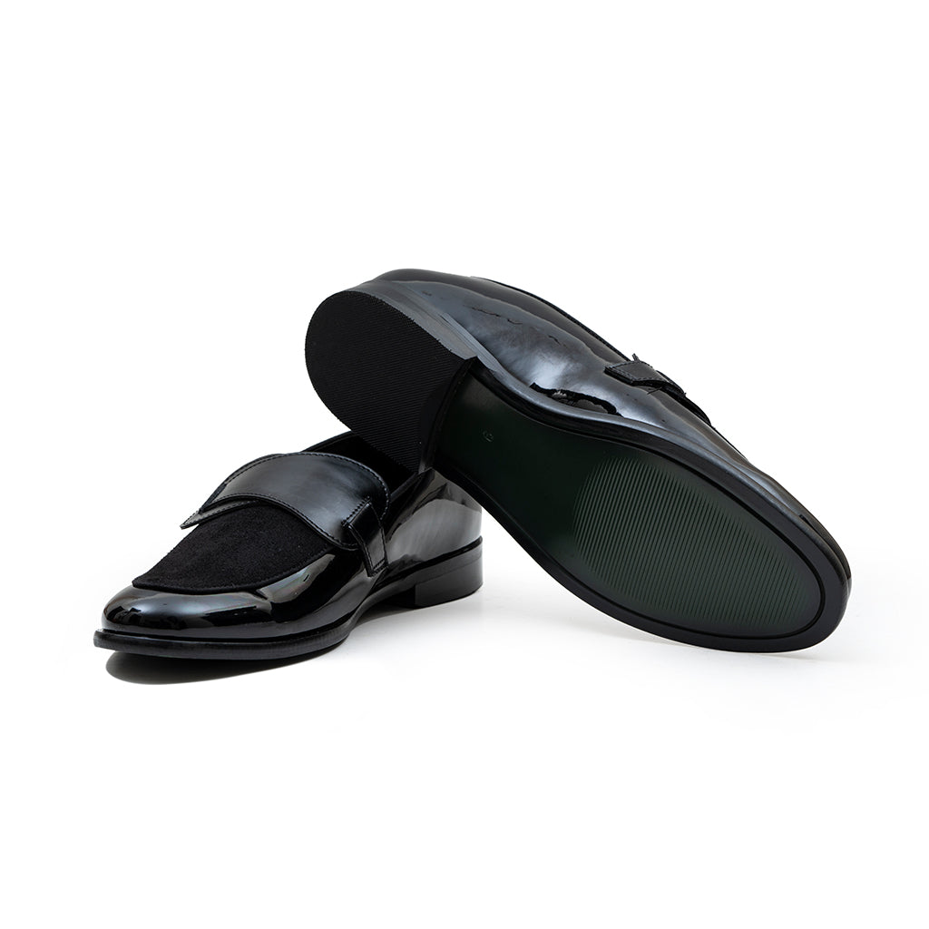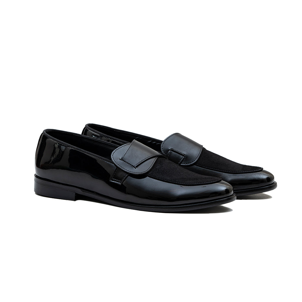 Your search for a red carpet loafer ends here. Taking the spirit of a butterfly loafer but adding a nice twist to it by separating the vamp to the quarters and allowing multiple faux leather/textures to be joined together. An elegant style, specially designed for your big day.