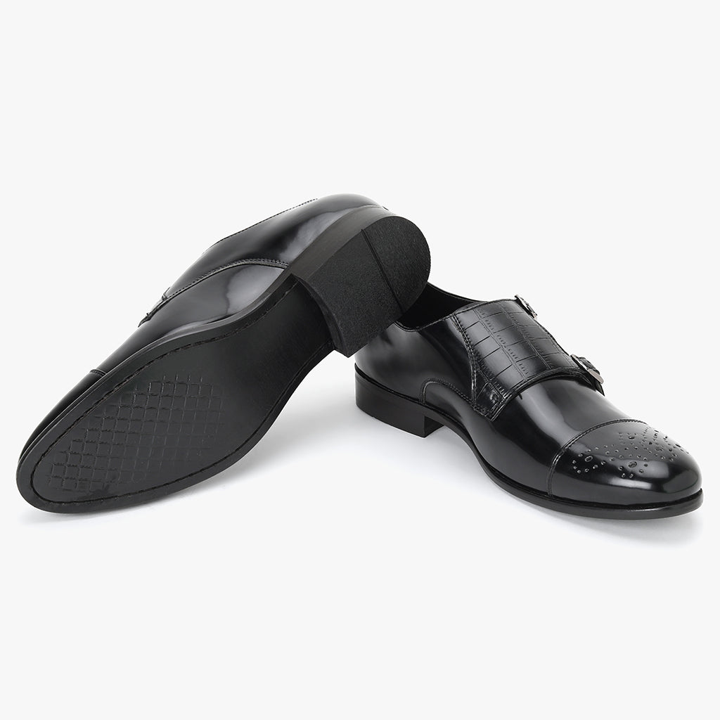 Double monk straps have become a staple in the modern man’s wardrobe, from board rooms to cocktail bars. Our monk strap shoes are combined with a combination of croco strap and brogue detailing, making it unique from the rest. A classic shoe meant for dark jeans or nice trousers, a nice shine on these will ensure they look razor sharp while remaining elegant.