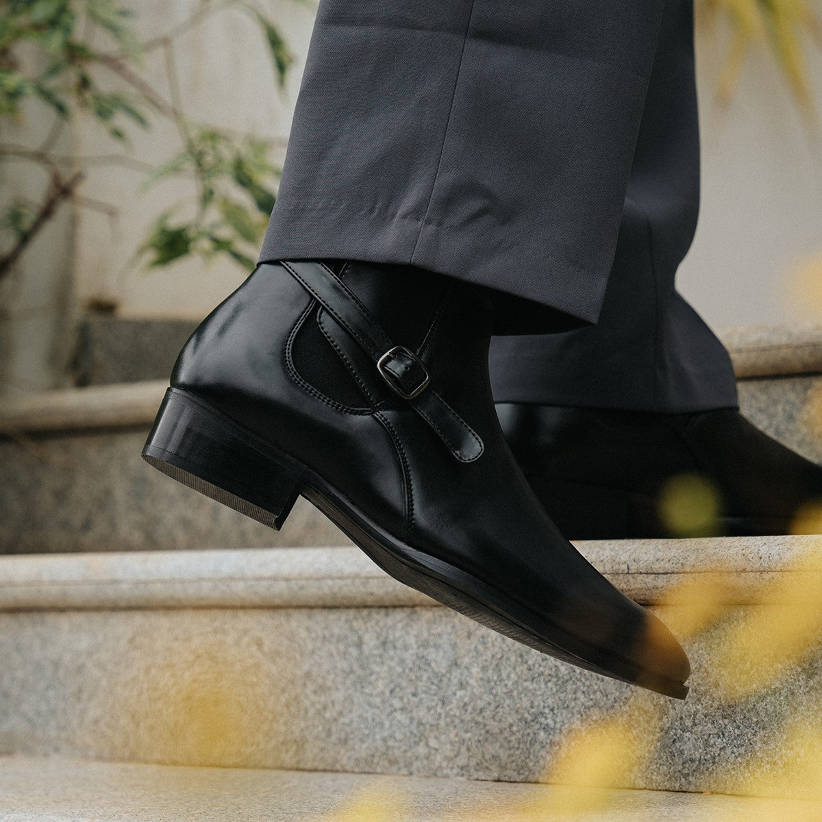 These brown suede boots, accentuated with vegan leather detailing, bring a breath of fresh air to your casual wardrobe, providing a perfect blend of style and sustainability. The sleek buckle strap not only adds functionality but also transforms these boots into a true style statement. Perfect for a day out or a relaxed gathering, these boots effortlessly pair with your favourite denim jeans, chinos, or casual trousers.