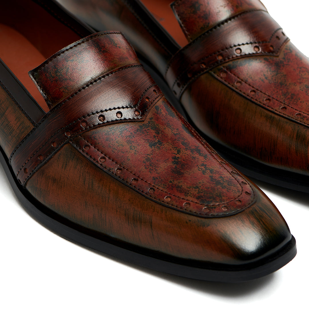 This slip-on cements the refined lines of a penny loafer, whilst rewriting them with a modern saddle strap along with a mix of colors on the vamp. The product you see is 100% handmade with a result of hours of labour and craftsmanship by our expert in-house artisans. The hand painted burnished tones of tan have a wonderful depth and richness.