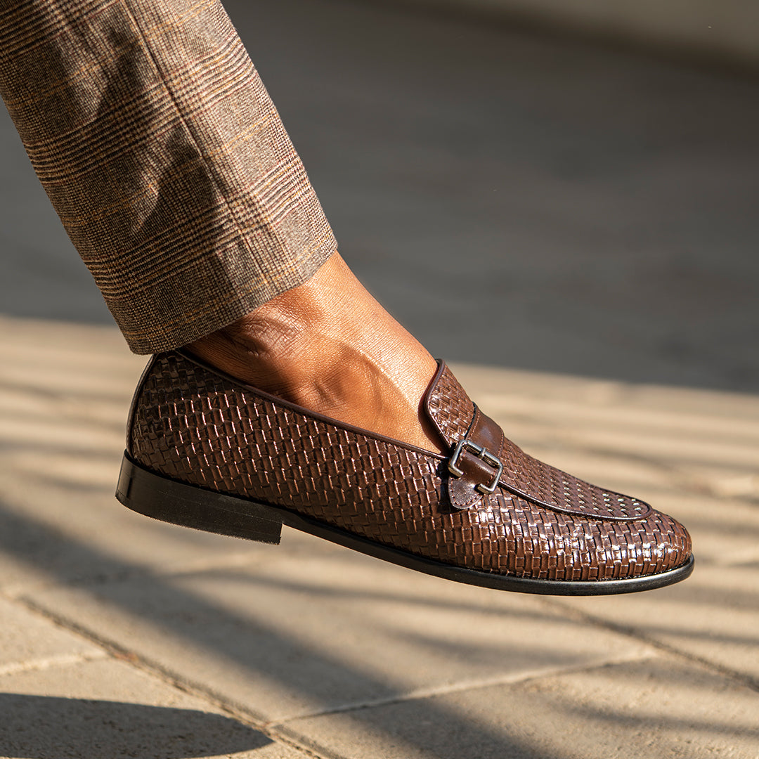 A classic woven slip-on with a contemporary twist of buckle strap on the upper. Designed for the modern man who accurately curates his style, right towards the smallest detail. With a soft foam padded insole and intricate woven upper, these slip-ons successfully fuses comfort and elegance.