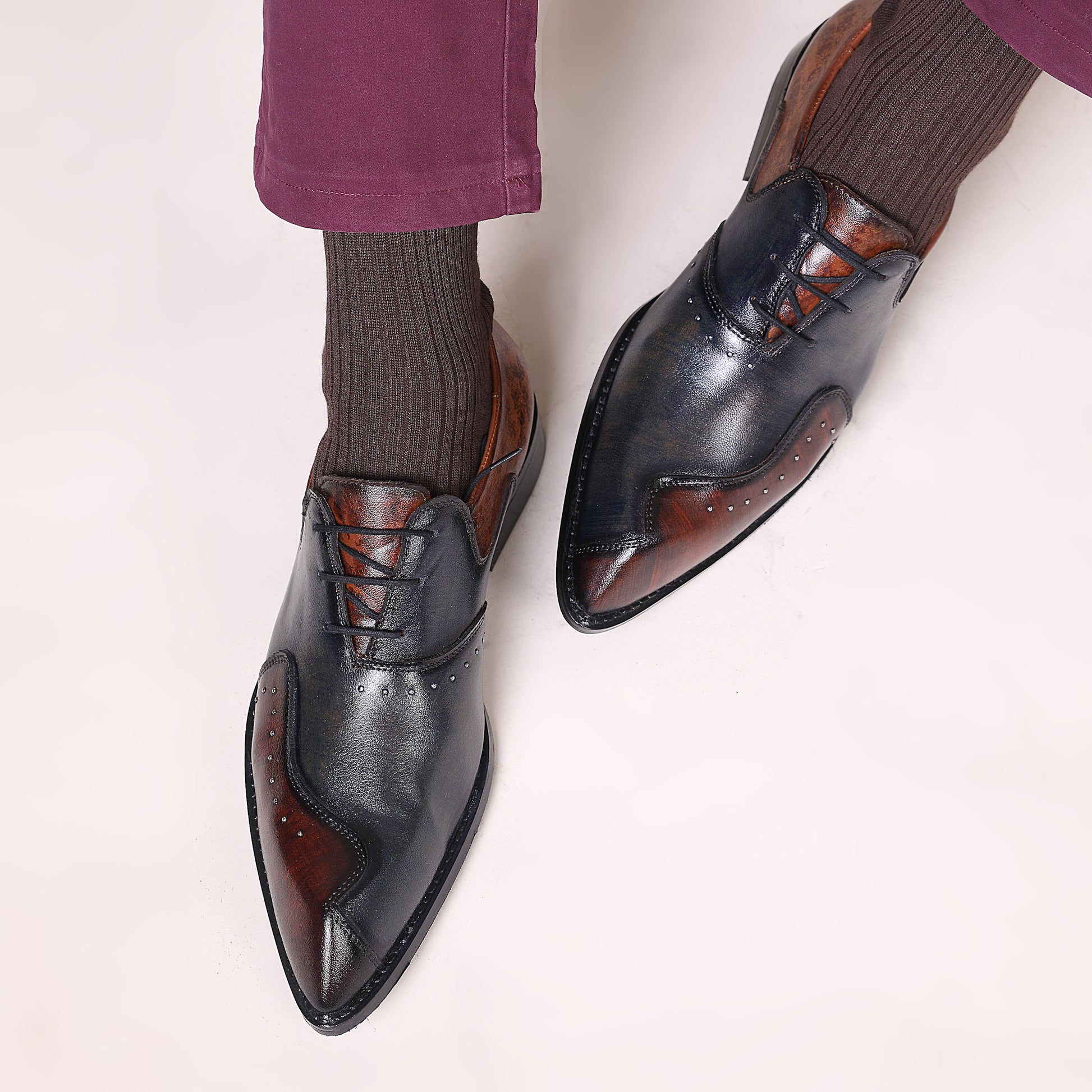 MULTI TONE LACE-UPS WITH POINTED TOE