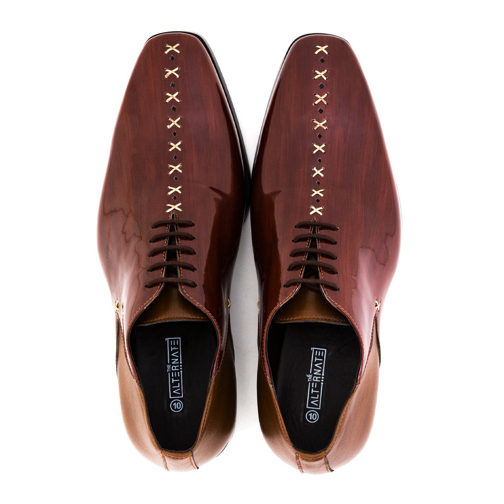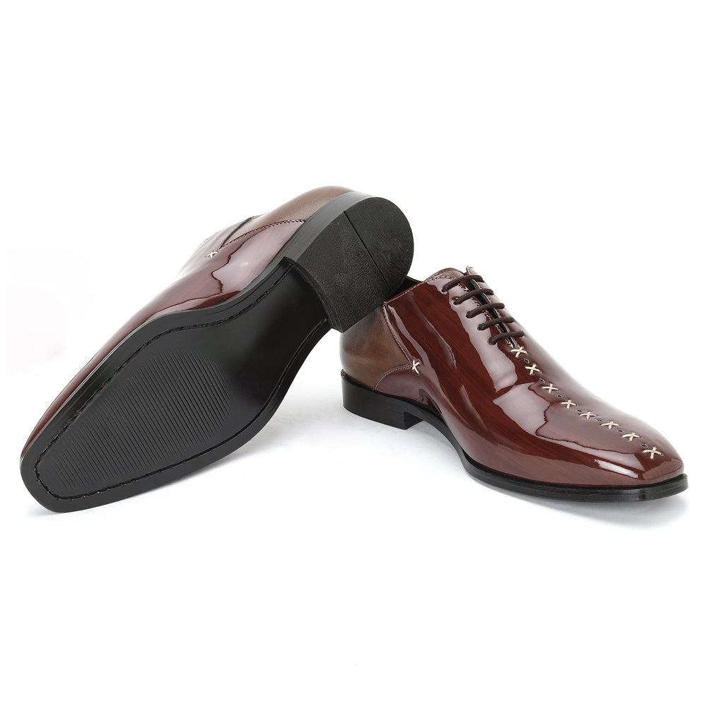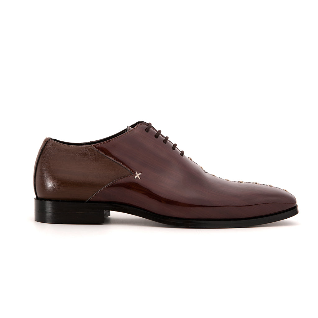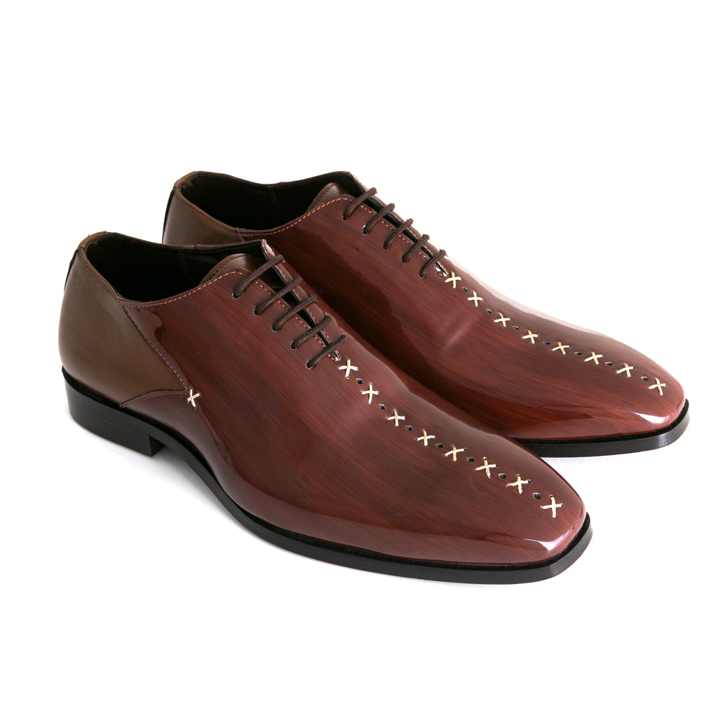 The rich dark-brown patent upper perfectly counterpoints the refined elegance of the classic design. These patent lace-ups are designed to give you all the elegance of your typical whole cut derby while having an additional bit of flare with the added thread stitch. The perforation combined with the stitch detail makes these shoes a perfect choice for your evening events.