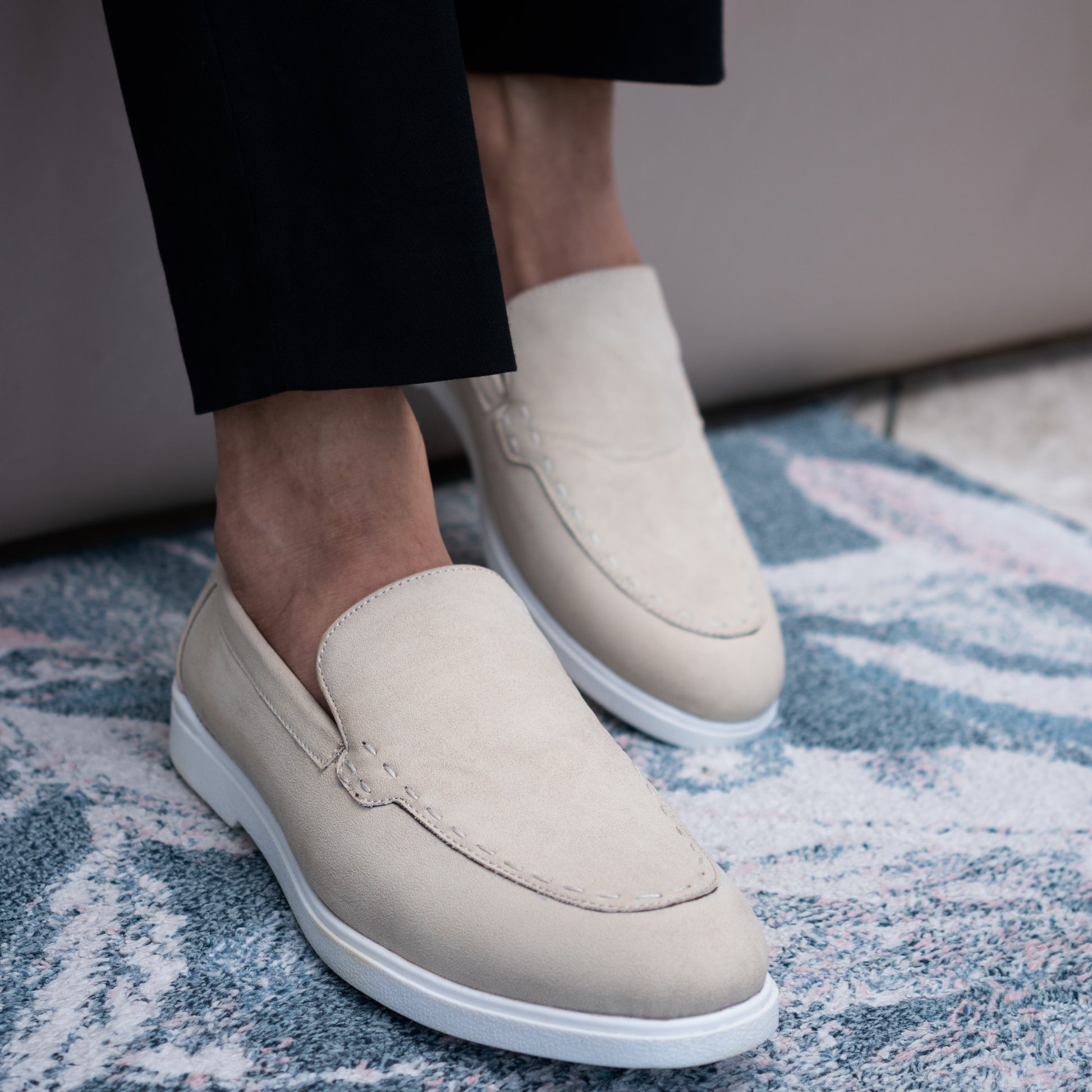 SUEDE SLIP-ONS WITH THREAD DETAIL- OFF WHITE