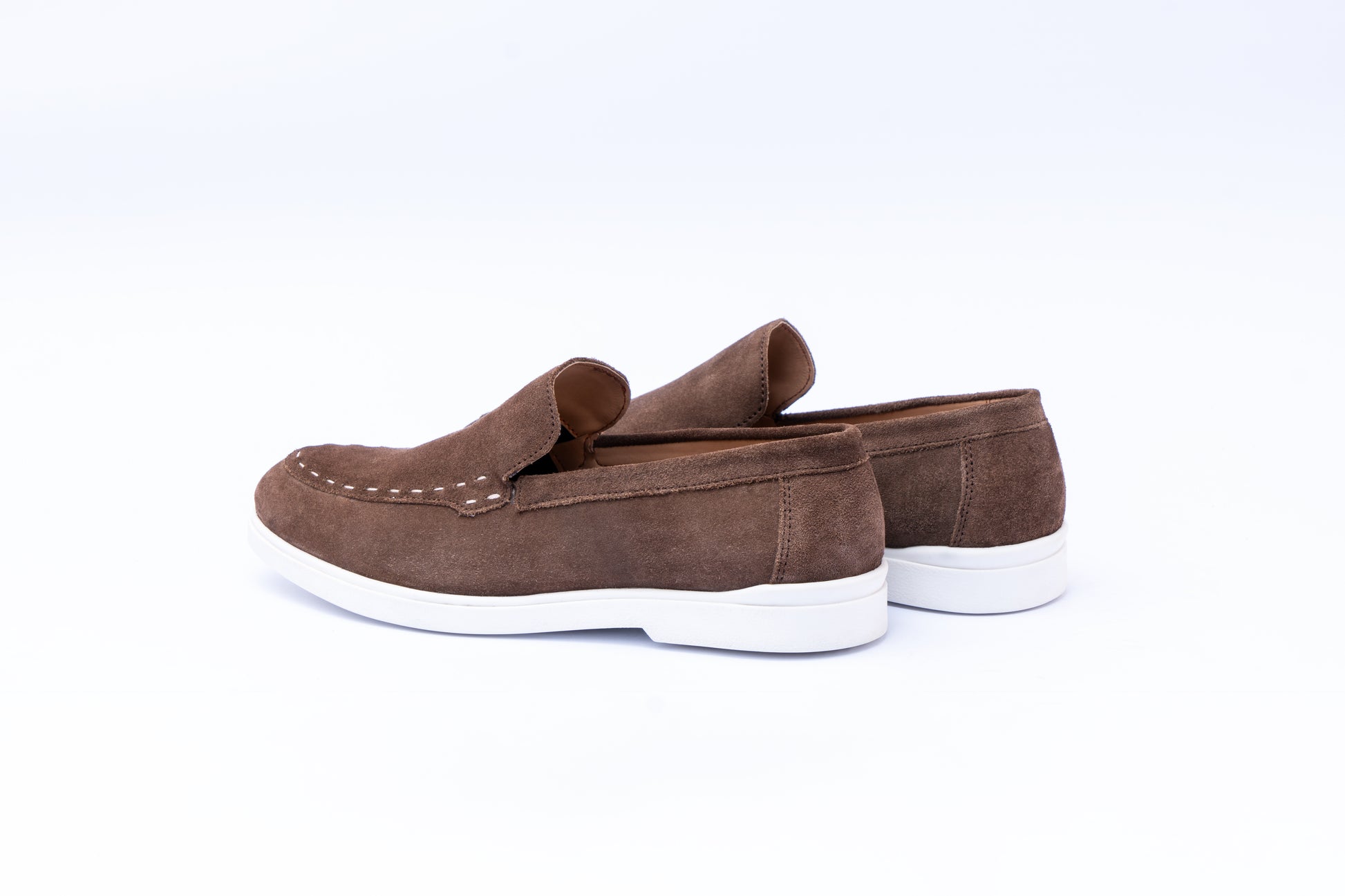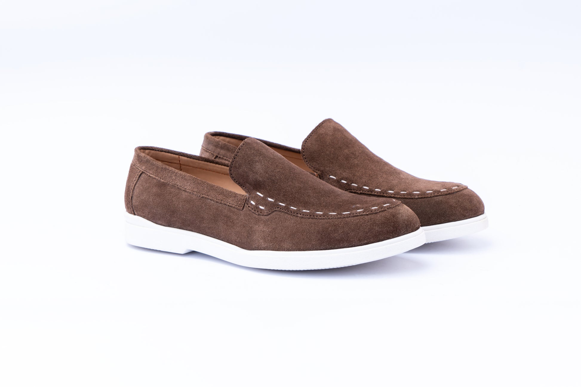 SUEDE SLIP-ONS WITH THREAD DETAIL- BROWN