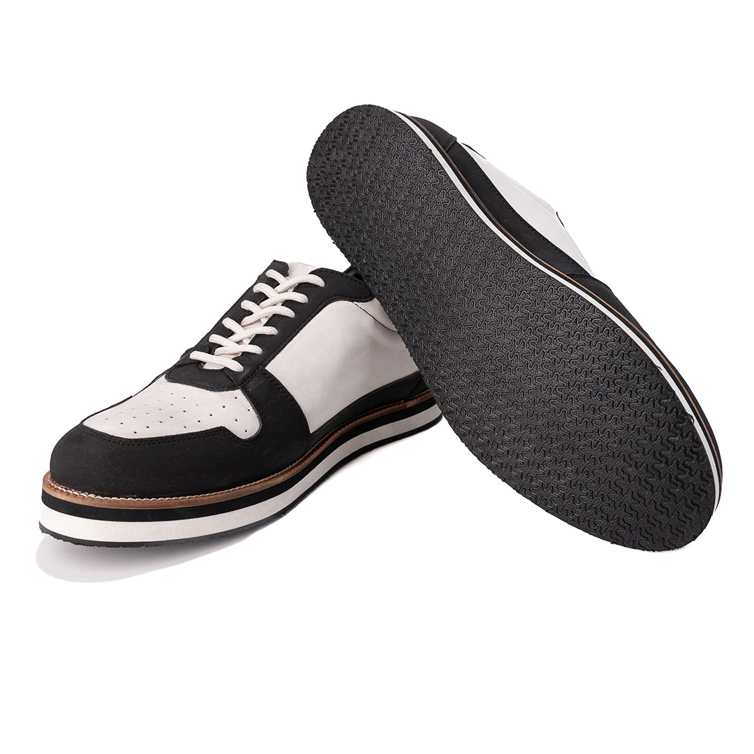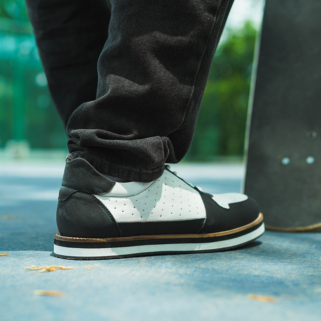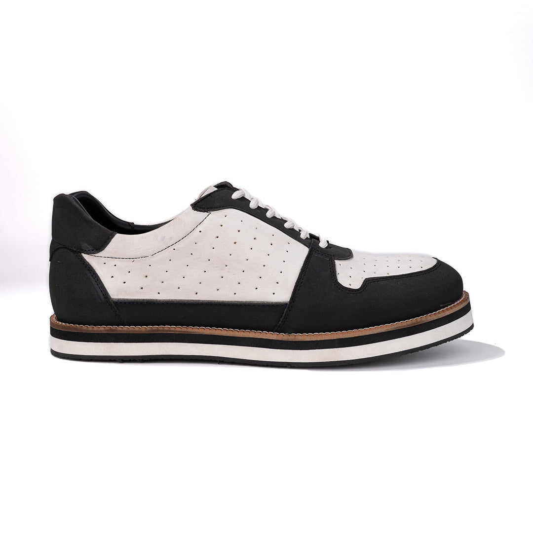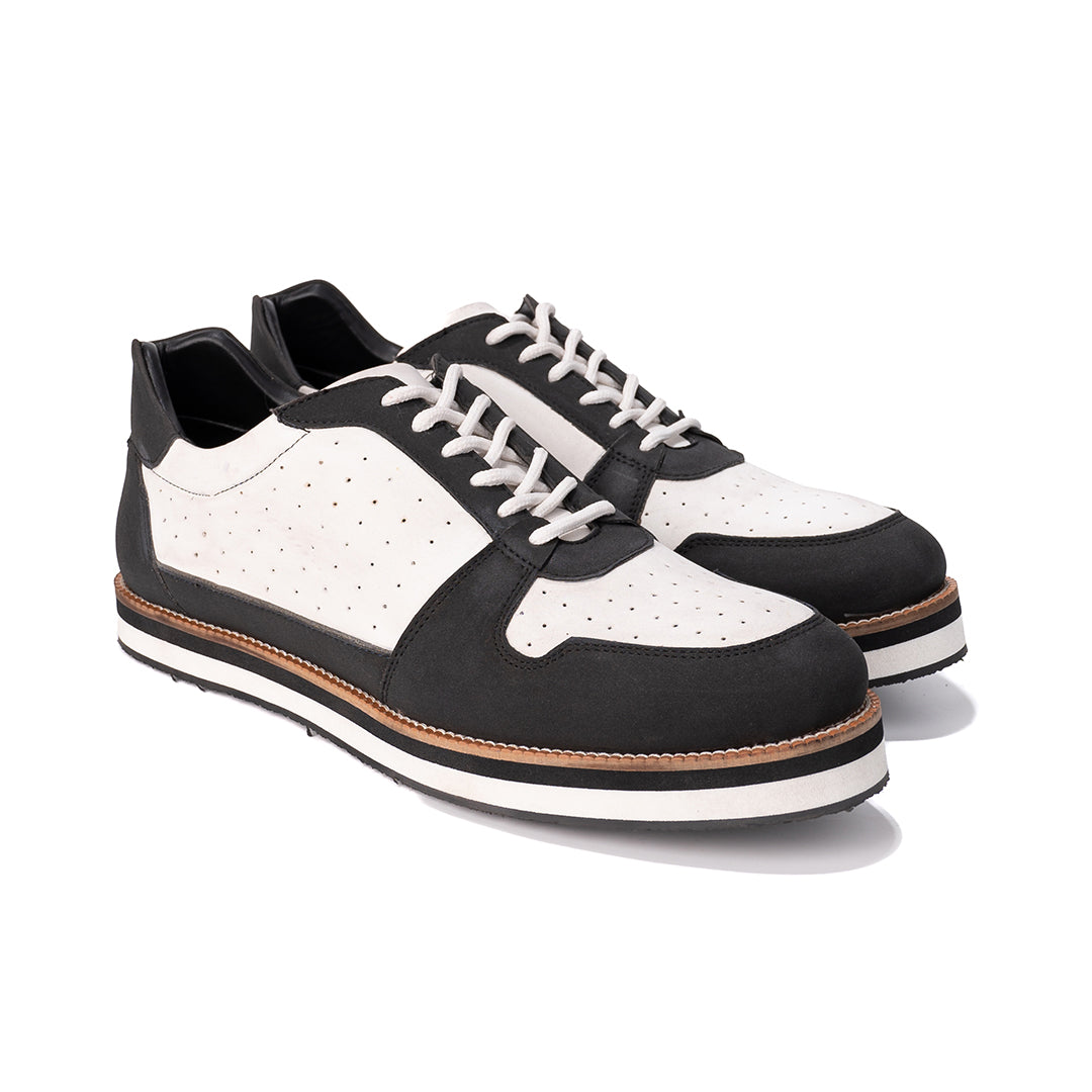 White and black sneaker with perforations