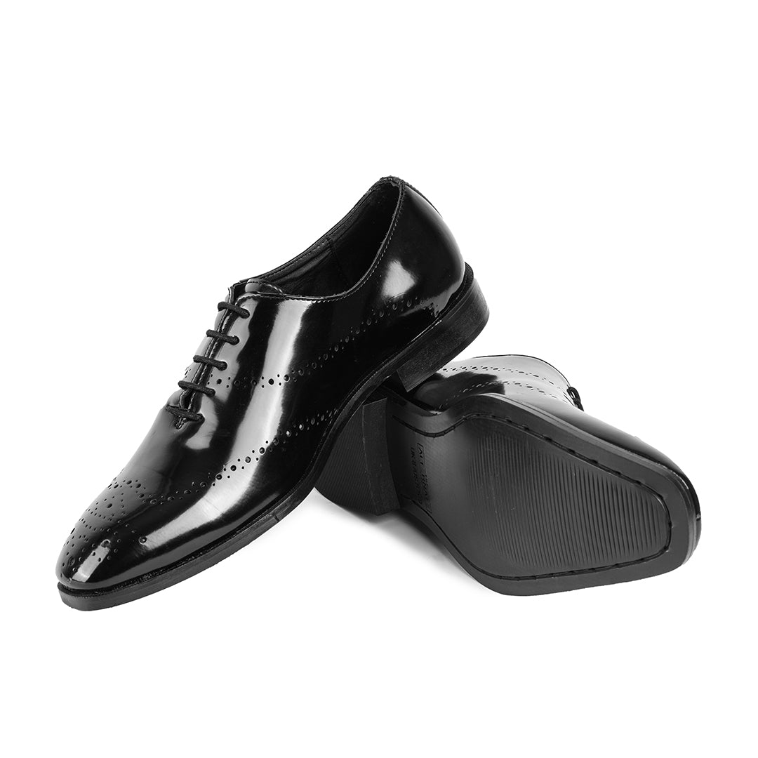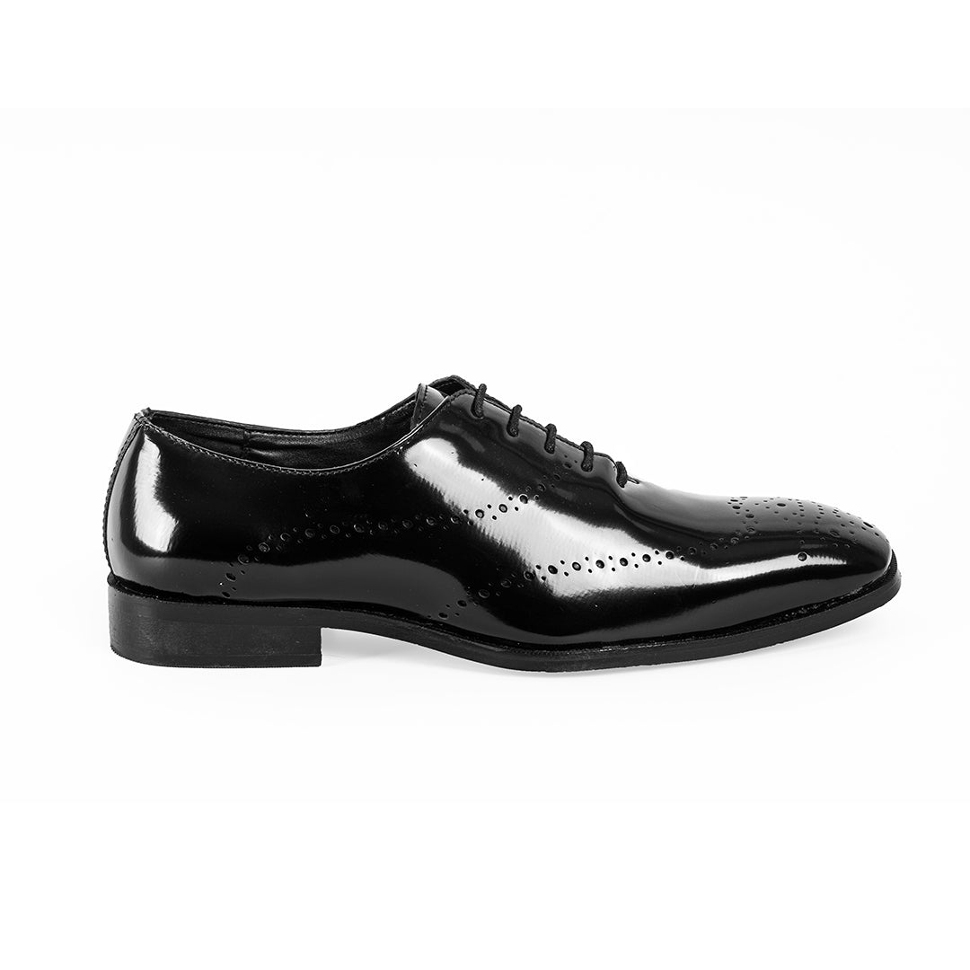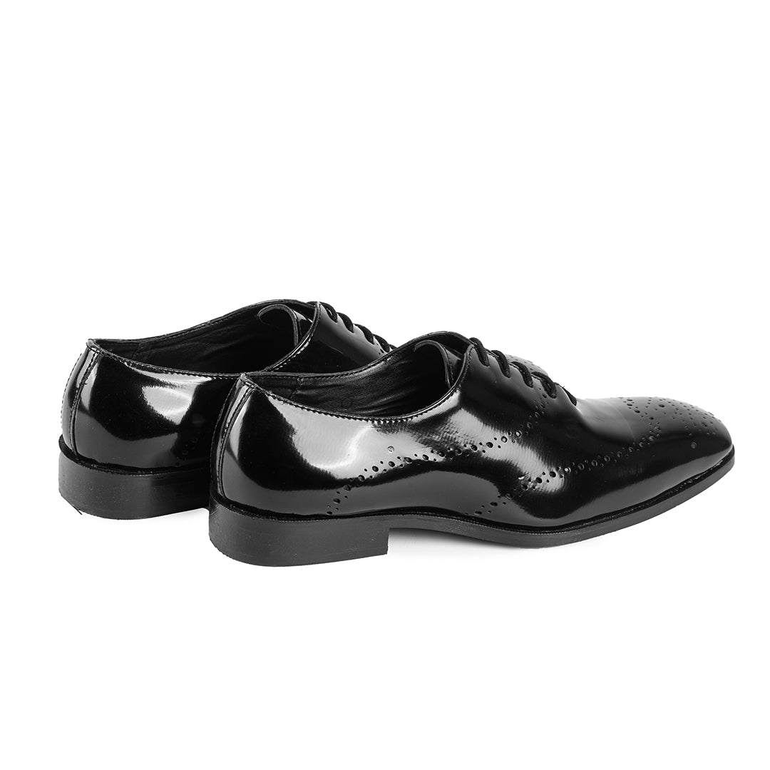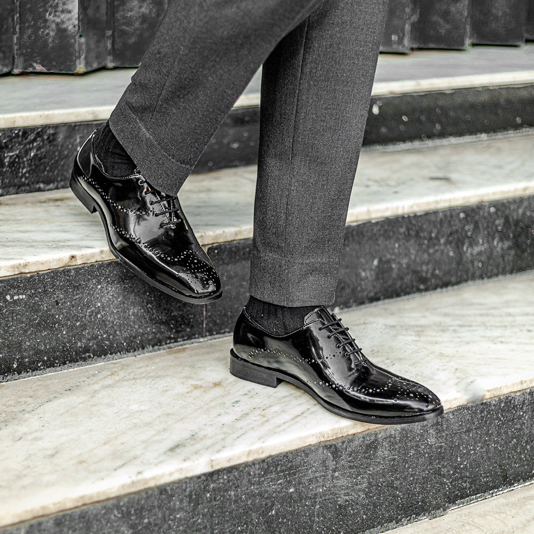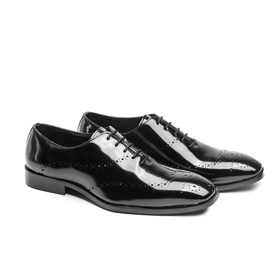 An elegant lace-up to elevate your formal look with a luxurious touch. This Oxford is crafted entirely by boasting a patent finish on the upper, along with blake construction technique on the outsole. The brogue inspired lines are uniquely used to create a symmetrical design across the vamp and a classic wingtip medallion toe ensuring a bold look to a classic design.